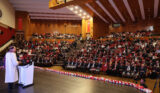 Onların hem akademik hem de sosyal anlamda tüm imkânlardan yararlanabilmesi için elimizden geleni yapıyor, ailelerinden uzakta yaşadıkları bu zor günlerde yanlarında olduğumuzu hissettirmeye gayret ediyoruz. Çünkü biliyoruz ki; her bir öğrencimiz hem kendi halkının hem de insanlığın umudunu taşımaktadır. Bu vesile ile Filistin konusunda sergilediği kararlı duruştan dolayı Cumhurbaşkanımız Sayın Recep Tayyip Erdoğan’a huzurlarınızda teşekkür ediyorum” dedi.
