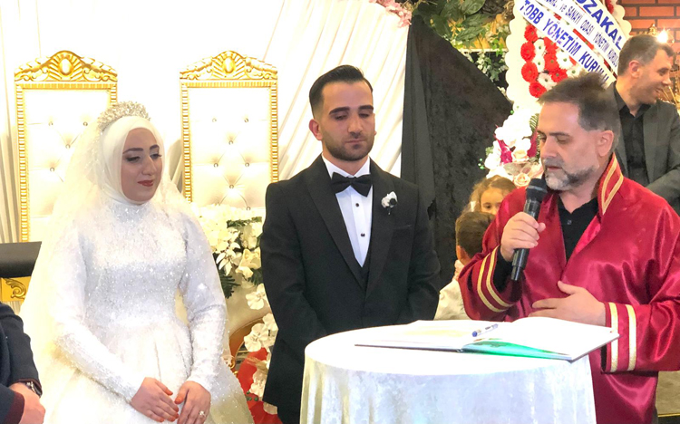 Koordinatör Recep Aydın, Hilal-Berat Yeltekin çiftine mutluluklar dileyerek nikah defterini Hilal Yeltekin’e teslim etti.