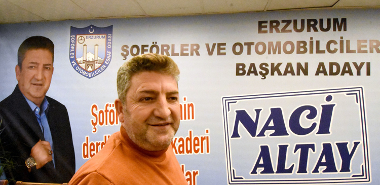 Erzurum Şoförler ve Otomobilciler Esnaf Odası’nda 2015-2017 yılları arasında Başkanlık koltuğunda oturan ve 20 yılı aşkın süre yönetimde görev alan Naci Altay, yeniden Başkan adayı oldu. Başkan Adayı Altay, ”Direksiyon bir araç değil, bir alın teridir. Bugün buraya bir aday olarak değil, bu camianın evladı olarak onurlu bir yola çıktım.” Dedi.