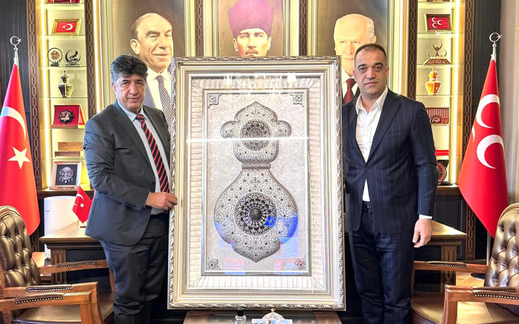 Pasinler Belediye Başkanı Ünsal Sertoğlu,  MHP İl Başkanı Yurdagül’e misafirperverlikleri ve Erzurum’a olan hizmetlerinden dolayı ziyaret anısına özel bir hat tablosu hediye etti.