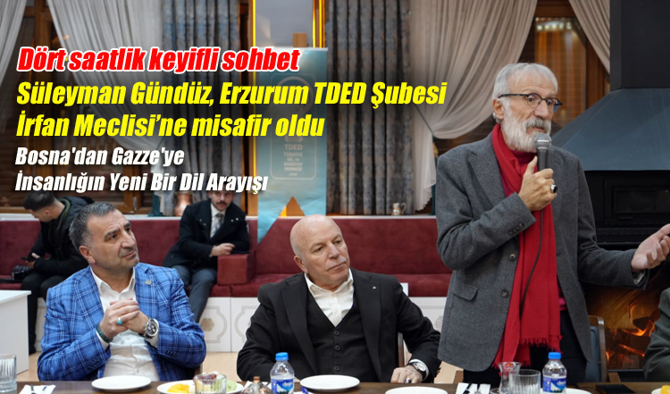 Türkiye Dil ve Edebiyat Derneği (TDED) Erzurum Şubesi İrfan Meclisi’nin bu haftaki konuğu Süleyman Gündüz oldu ve Bosna’dan Gazze’ye İnsanlığın Yeni Bir Dil Arayışı” üzerine konuştu.