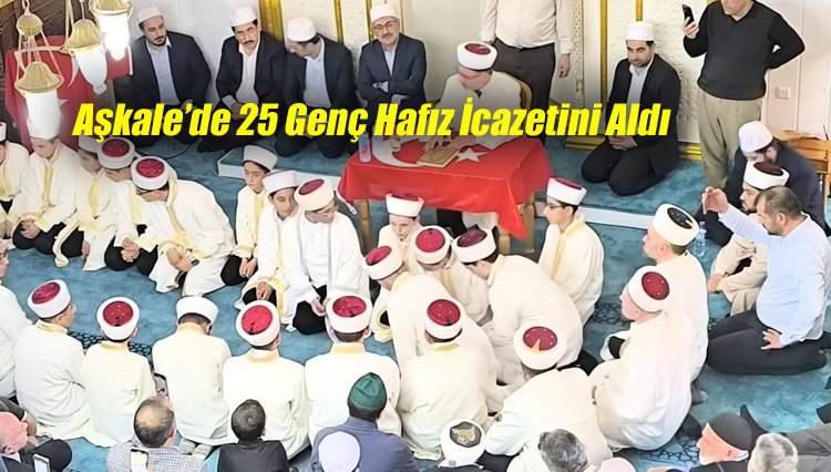 Erzurum’un Aşkale ilçesinde, Emine Hatun Yatılı Erkek Kur’an Kursu’ndan mezun olan 25 hafız için “Hafızlık İcazet Merasimi” düzenlendi. Merkez Çarşı Camii’nde gerçekleştirilen törende duygusal anlar yaşandı.