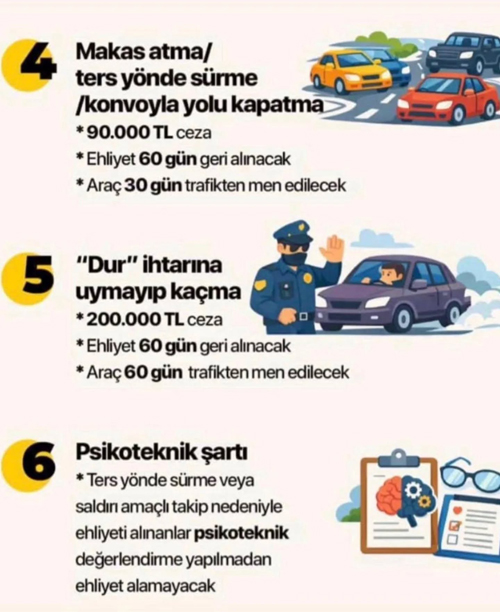 Erzurum İl Emniyet Müdürü Onur Karaburun, yeni yönetmeliğin yürürlüğe girdiğini ve yasa değişikliği olduğuna dikkat çekerek, “Ne oldu biliyor musunuz? İlk ceza bir polis memuruna yazıldı. Ekipler resmi polis memuru arkadaşımıza ceza yazdılar. Toplamda 28 bin lira gibi bir ceza yazıldı. Yani bunun gerçekten ciddi olduğunu, yaptırımın ciddi olduğunu göstermek adına; polis dahil herkesin bu kurala uyması gerektiğini, bunun bir istisnasının olmadığını bir kez daha ifade etmek istiyorum. O yüzden bu kuralları el birliğiyle, hepimiz birlikte hareket ederek hayata geçireceğiz. Kırmadan dökmeden, insanımızı üzmeden ama birlikte trafik kültürünü de oluşturarak güvenli bir trafiği, hızlı akan bir trafiği hep birlikte sağlayacağız” dedi.