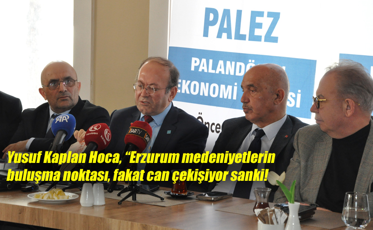 PALEZ’in toplantısında konuşan Prof. Dr. Yusuf Kaplan, Erzurum’un şu an stratejik değerinin gittikçe önem kazanmasına rağmen kıymeti bilinmeyen bir şehir olduğunu söyledi. Prof. Dr. Kaplan, “Erzurum, bütün Asya’nın içlerinden Avrupa’nın içlerine kadar güneyden, kuzeyden, doğudan, batıdan acayip bir şekilde tam bir medeniyetlerin buluşma noktası, kavşak noktası. Yani böyle bir özelliği var Erzurum’un. Maalesef şu an bu ifadeyi kullanmak zorundayım, gördüğüm manzara böyle bir manzara. Şu an yaşlanmış gibi duruyor. Çok yaşlı, bir şekilde emekliye ayrılmış, istifa etmiş, hayattan istifa etmiş, ölmek üzere can çekişiyormuş gibi bir izlenim var. Halbuki müthiş dinamizmi var” dedi.